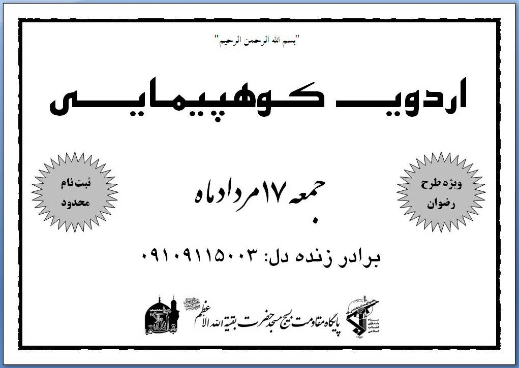 علاقه مندان جهت ثبت نام همه روزه بعد از نماز مغرب و عشاء به برادر خسروی مراجعه نمایید
